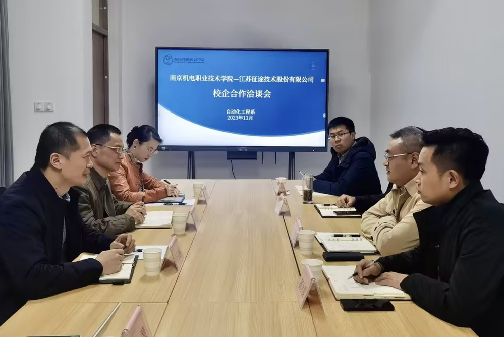 11月16日下午,江苏征途技术股份有限公司执行董事孙玉林、李国峰一行4人到拼搏平台调研,洽谈校企合作。拼搏平台党委委员、副校长刁爱军会见企业代表,自动化工程系副主任顾晟吉、专业教师唐建伟参加座谈会。自动化工程系党支部副书记高水冕主持座谈会。
