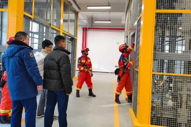 南京机电·上海三菱电梯产业学院为此次拍摄提供了实景场地和专业的设备设施。消防总队的工作人员在拍摄过程中,认真模拟了电梯救援的各个环节,从故障排查到安全破拆,再到被困人员的解救,每一步都严谨细致,展现出高超的专业技能与应急处置能力。