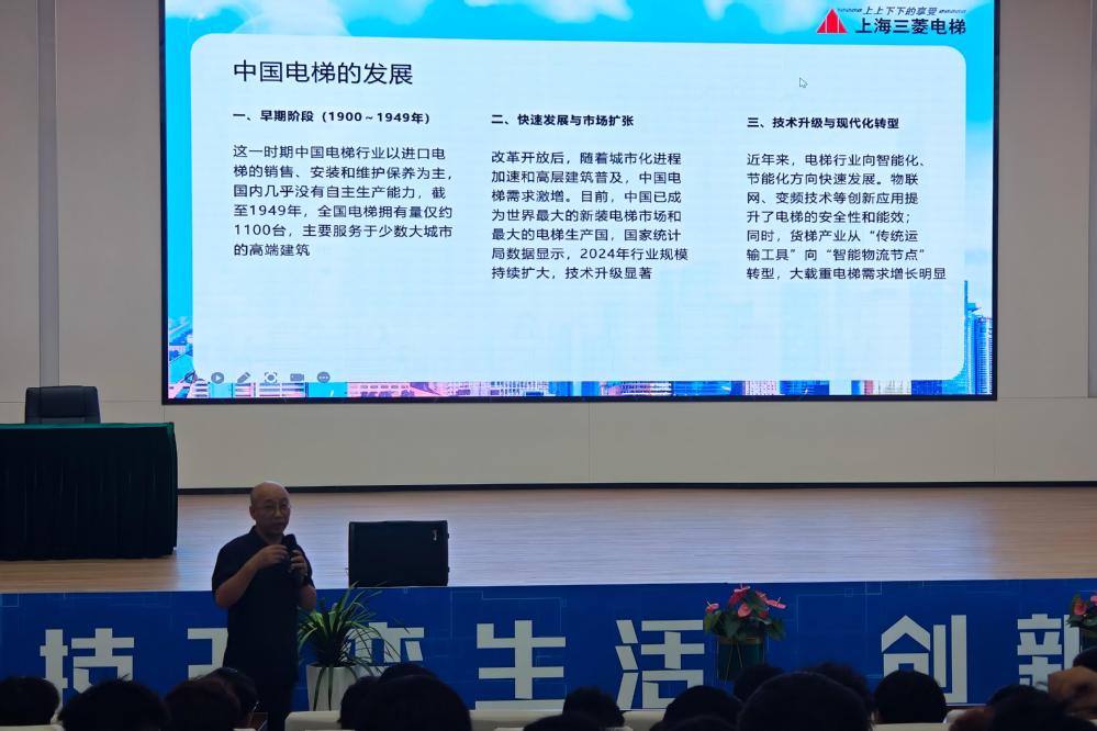 9月16日,2025级新生入学教育系列活动——“匠心科普讲堂:走近产业创新与未来科技”职业生涯启蒙讲座在乐学楼102圆满举行。活动由自动化工程系副主任顾晟吉主持,特邀上海三菱电梯有限公司技术总监秦勇泉担任主讲嘉宾,自动化工程系辅导员及2025级机电一体化技术专业全体新生共同参与。